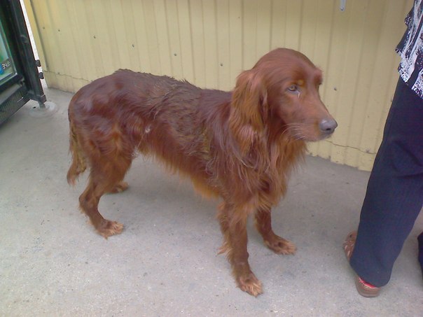 Найден породистый Ирландский сеттер, кобель примерно 1,5 года. На ул.Титова .К себе на передержку взять не могу, т.к. у самой 3 крысы, 4 м.свинки,собака, кошка, аквариум, тем более сеттер-собака достаточно большая.