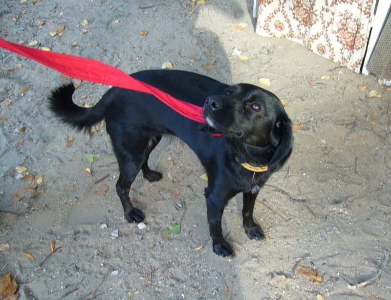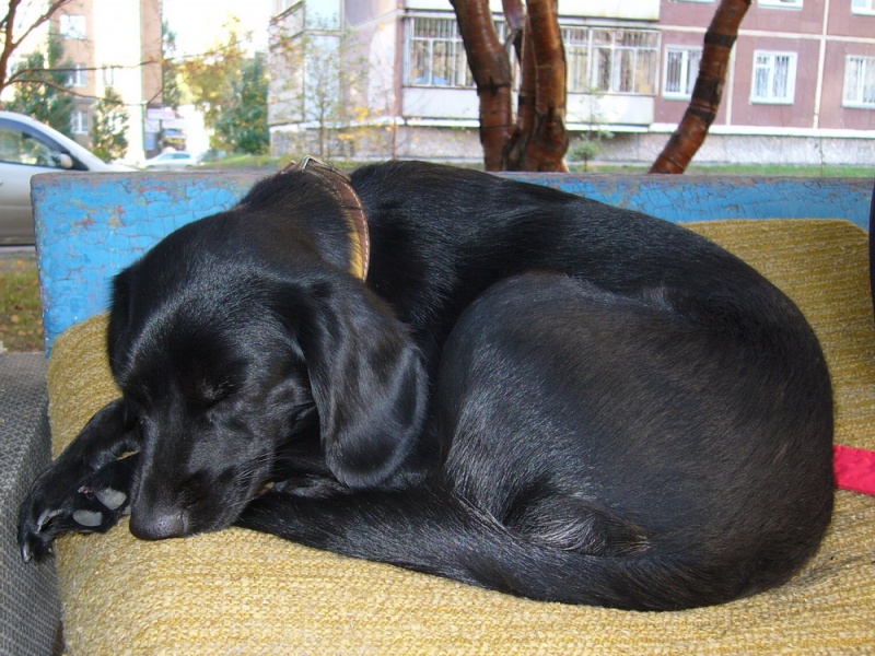 Примерно неделю назад во дворах ул. Демакова - Полевой Академгородка появилась черная собачка с двумя ошейниками (один коричневый, другой желтый - противоклещевой). У собачки висячие ушки, породу точно не назову, не очень разбираюсь.
