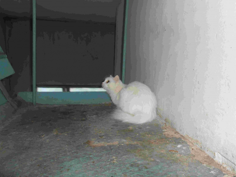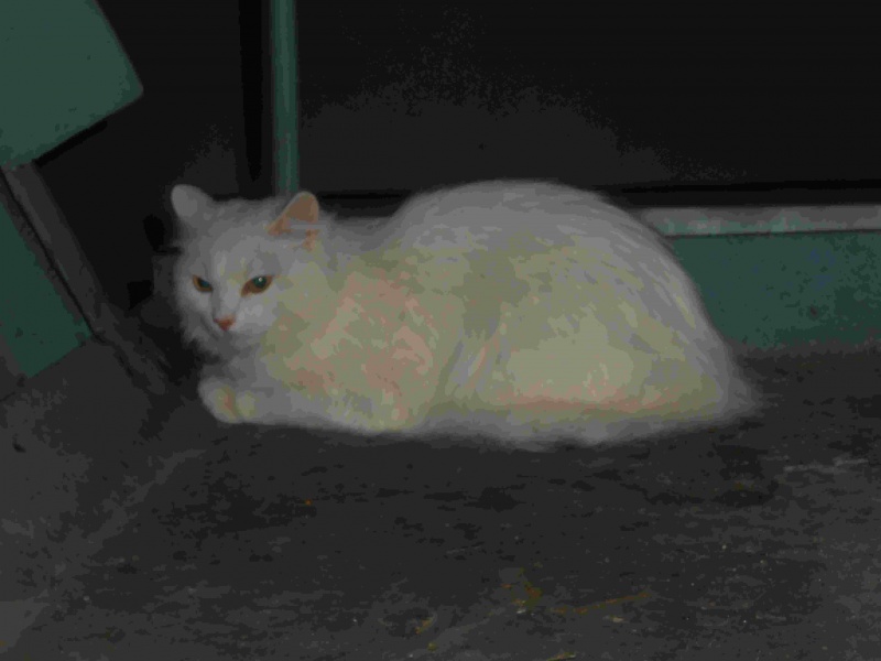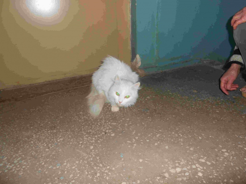 Не знаю, почему такие фото получились, кошка белоснежная.