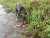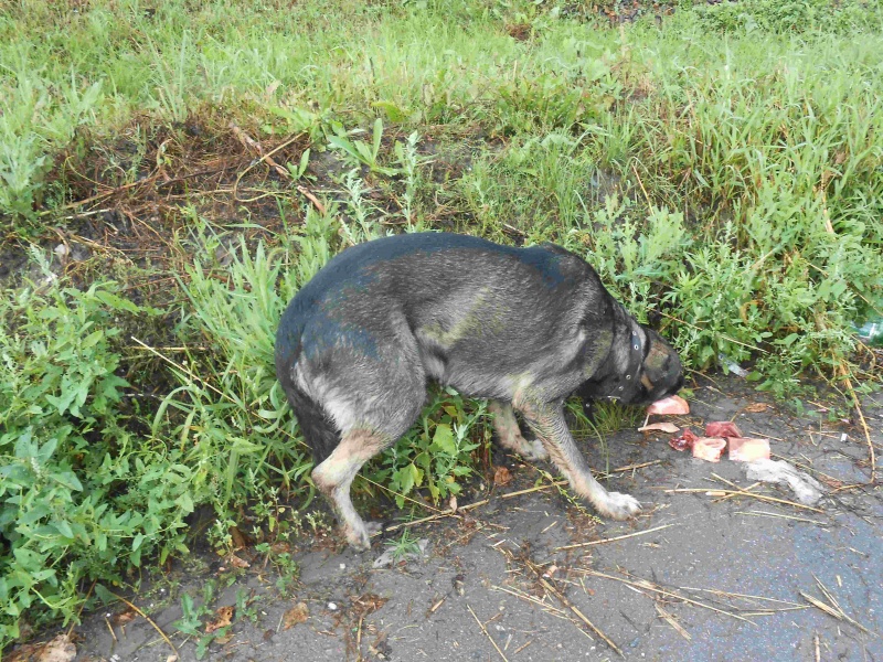 Худой, но еще не истощен. Очень голодный . Покормили.