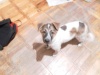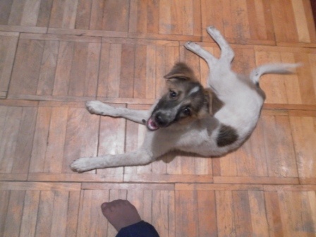 щенку месяца 3-4. есть ошейник кожанный. не голодный, вероятно сбежал недавно. вероятно из семьи с детьми. знает поводок, с удовольствием гуляет на поводке.