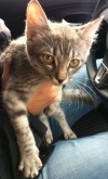 13 октября около 10:30 подобрали котенка на ул. Ильича, напротив ТЦ Академгородка. Ребенок выбежал из лесочка напротив, трясся от холода и громко плакал. Оставить на улице не смогли.