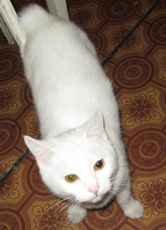 15.10.2013г. в Первомайском районе найден чисто белый кот (может подросший котенок) без хвоста. Глаза янтарного цвета. обращатся по тел. 8913четыреста пятьдесят7904 Марина.
