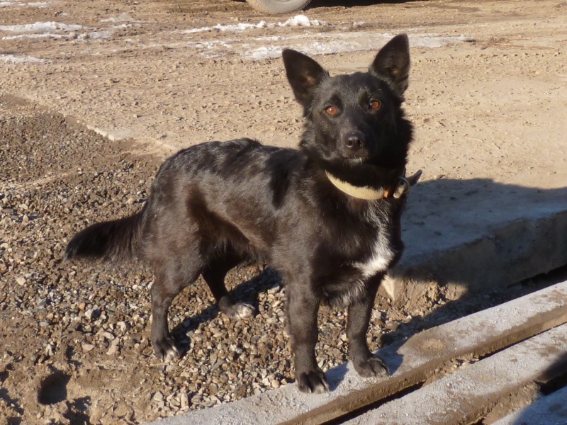 В Краснообске (ВАСХНИЛ) летом приблудилась маленькая (30см в холке) чёрная собачка с белым пятном на груди. Была в ошейнике, явно домашняя. Собачка молодая, жизнерадостная. Её стерилизовали в ПЛС, поставили укол от бешенства. Сейчас ей негде жить, она находится на улице.