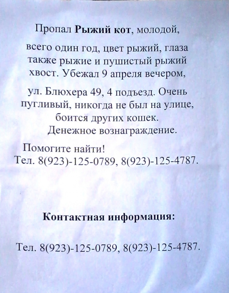 Ответ на сообщение На юго-западном ж/м найдена рыжая кошка/кот пользователя лесок