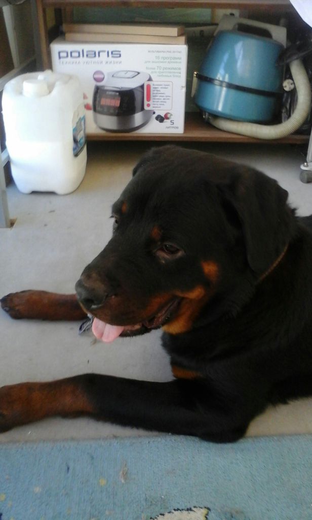 Сегодня на пл.Труда (ул. Широкая) найден кобель ротвейлера, в ошейнике коричневого цвета, на данный момент на временной передержке (2-3 дня). Ищем хозяина или передержку (бесплатную желательно) Тел. для связи 8-913-9448493 Наталья