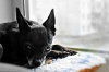 Черненький, морда седая, на груди белое пятнышко, прихрамывает на одну лапку!