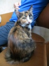 Малышка была осмотрена ветеринаром, возраст назван около 3 месяцев. Зубки еще молочные. Обработана от паразитов. Очень любопытна, играет с мячиком. Ходит в лоток. На наших кота и собаку по началу только шипела, сегодня ведет себя уже гораздо смелее.