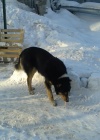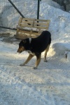 В конце осени ,примерно, к собакам,живущим на предприятии,прибился пес. Крупный,красивый,с грустными глазами. Они его приняли. Теперь мы подкармливаем и его. Недавно стал хромать. К людям не подходит,боится.