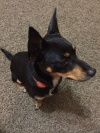 Мальчик, 2 года. На шее два ошейника (черные). В холке 30 см. Метис, похож на пинчера.