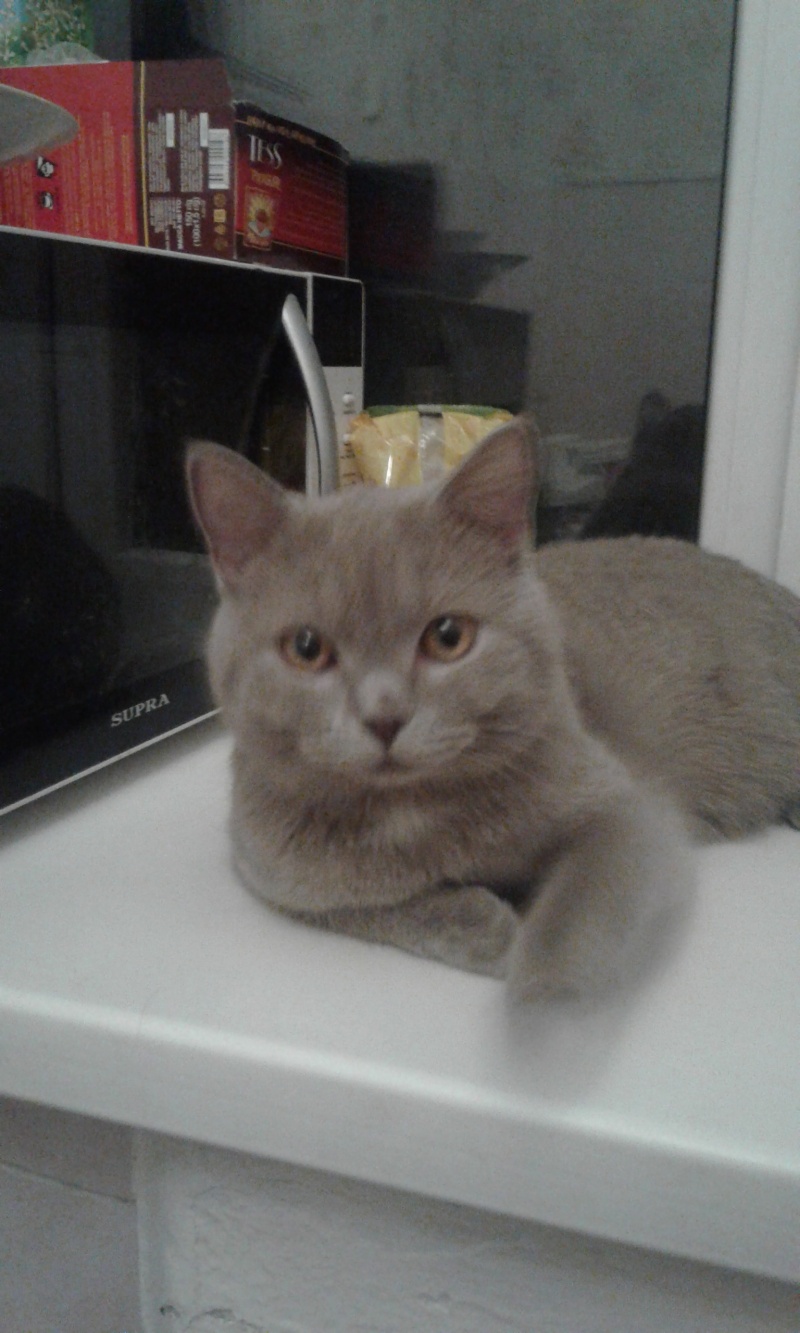 Котик молодой, крупный, годовалый, окрас серый, но ближе к лиловому, похоже, что в предках были британцы.