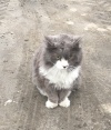 Найдена кошка (или кот?), пушистая, цвет дымчатый, лапки и манишка белые. В оранжевом ошейнике.