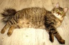 Окрас серо-бежевый с чёрными полосками. Глаза зелёные. Среднего размера. Средней пушистости, а хвост пушистый. Вокруг глаз могут появляться слёзные подтёки.