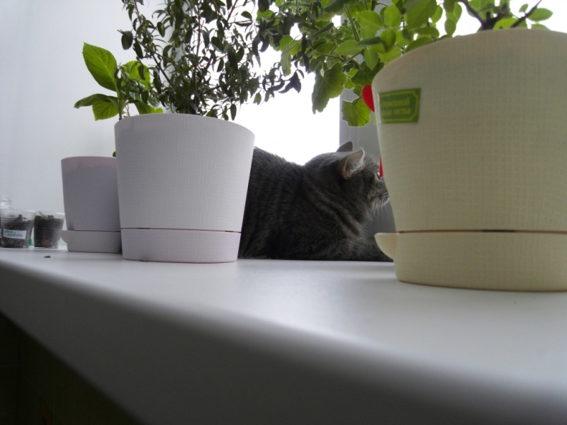 - птичек стало много, цветы пришлось перенести (неудобно все убирать, когда семечек насыпаешь), котэ лежит целыми днями в засаде за оставшимися горшками... Скоро, наверное, будем пить кота Баюна