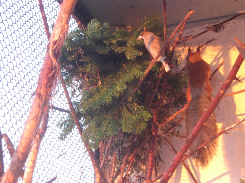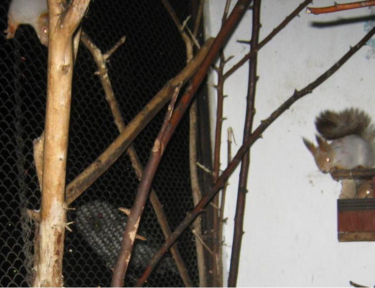 А вот эту птичку принесли уже взрослой. Подобрали в луже, сбитую машиной. Она сама не пожелала улетать. Четыре года уже живет с белками. Дружит и ... )))) надзирает. При появлении совы или вороны резко и пронзительно кричит.