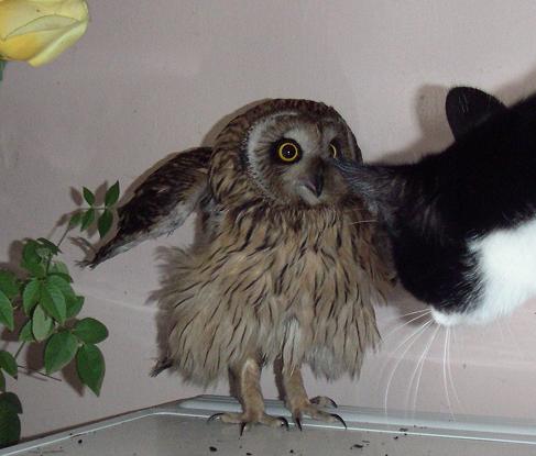 Через какое-то время мне позвонила девушка, которая его и подобрала. "совенок сидел в клетке, она была открыта. подошел соседский ребенок. Совенок испугался, вылетел из клетки и сломал ногу об стол.".... Ну это так, в кратце. На мое негодование, почему сова сидела в клетке, как получилась такая фигня - ну ведь он жил у папы. Девушка туда просто заезжает иногда.