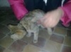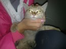 хозяева до сих пор не объявились, поэтому люди, которые ее нашли, принесли одеялко и подкармливают ее.