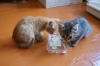 Семейство все находится не передержке. Мама кошка, назвали ее Маришкой, с очень грустными глазами, худая-прехудая. Но не смотря на голод, к еде подпустила котяток, пока они не наелись, не подошла. Кошка очень красивая. Котятушкам месяца 2, кушают самостоятельно, но от маминого молока не отказываются. Все подвижные, шустрые, успели и поесть и друг друга натрепать. Фотографировала до купания, чумазых. Потом отмыли носы, глаза, уши, все чистые и красивые. Вечером выложу в этот же пост фото их чистенькими. Завтра будем глистогонить. Так что все профилактические меры приняты. Осталось дождаться хозяев. А они нам, ой как, нужны.
