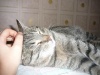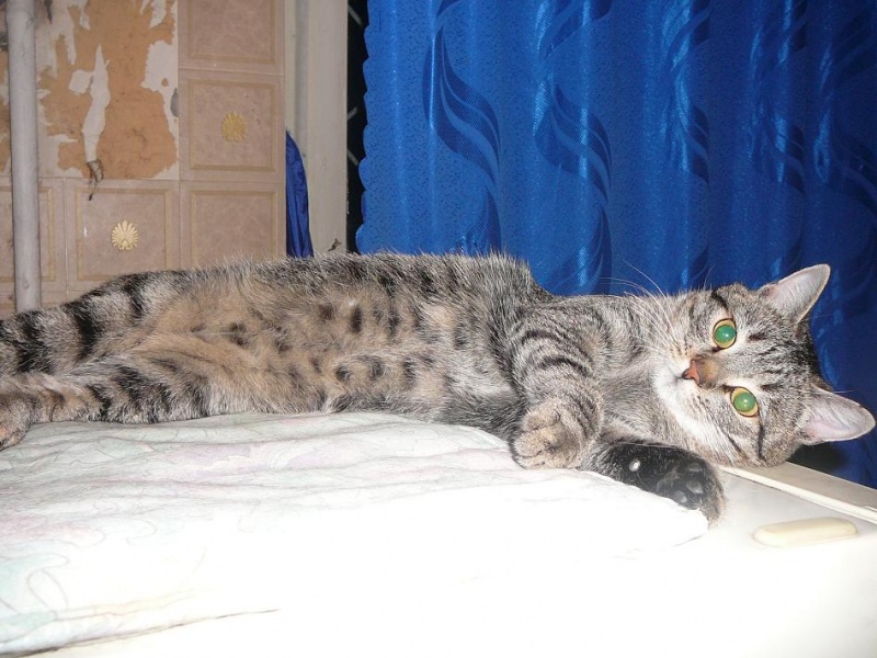 Молодой серенький полосатенький котик, месяцев 8-9 всего, уже кастрированный, очень ласковый, мурчащий, ходит в лоток - и на решетку, и в наполнитель, и на решетку ( а под решеткой наполнитель), кушает ( я б сказала - жрет) все, с ну очень огромадным аппетитом