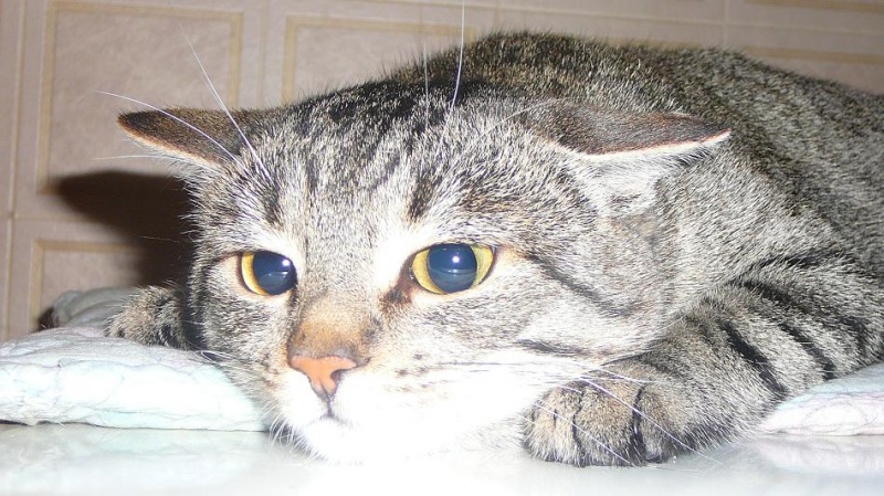 Здоров, находит контакт с людьми в считанные секунды, любит лежать и мурчать на коленках.