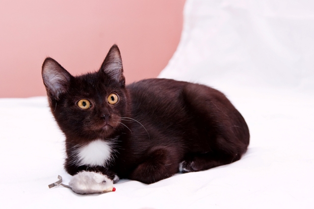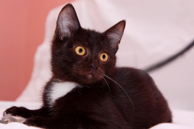 Гладкошёрстный. Возраст около 3-х месяцев. Очень нарядный окрас - чёрный с беленькой манишкой. Котёнок приучен к лотку. Очень умненький.