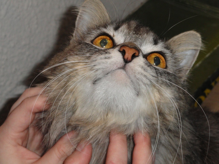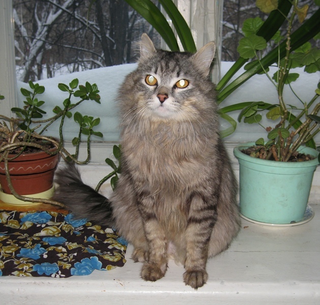 Сегодня съездили его сфотографировали, кот ооочень большой, прямо гигант , на верхних фотографиях этого не видно, но когда сегодня я его брала на руки-это просто огромное чудо, с длинюшими усищами, шикарными янтарными глазами, что-то в нем породистое есть явно (может даже сибиряки) Просто отлично сдружился с двумя собачками, которые вместе с ним находятся на передержке. Еще очень меня поразила его шерстка, очень густой подпушек. По характеру, как я и писала, кот очень ласковый, даже к чужим людям, идет легко на руки, дает легко себе почесать шейку, крайне любознательный, фотографировали, а он все вокруг пытался обнюхать и обследовать, окрас у него также интересный, именно серебристый, что не так часто и встречается. Звонить по котику можно также мне - 8-913-390-55-91 Татьяна.