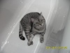 Котик уже кастрирован (30 апреля). Т. М. из Алфеи сказала, что котик совсем молоденький. Примерно 7 месяцев, но из ранних. Наверное запросил кошку, пометил в квартире и его выбросили.