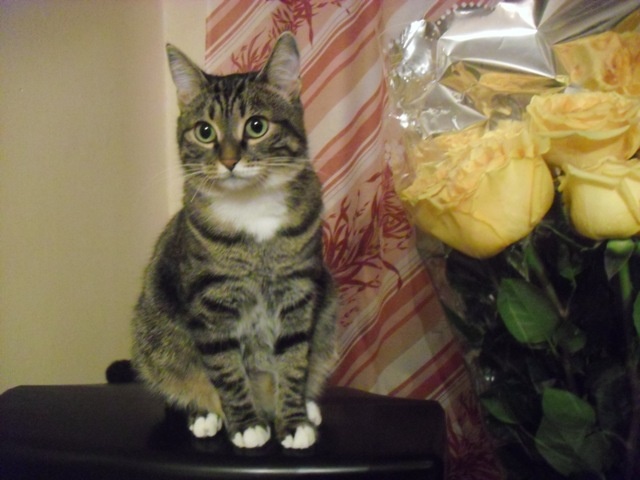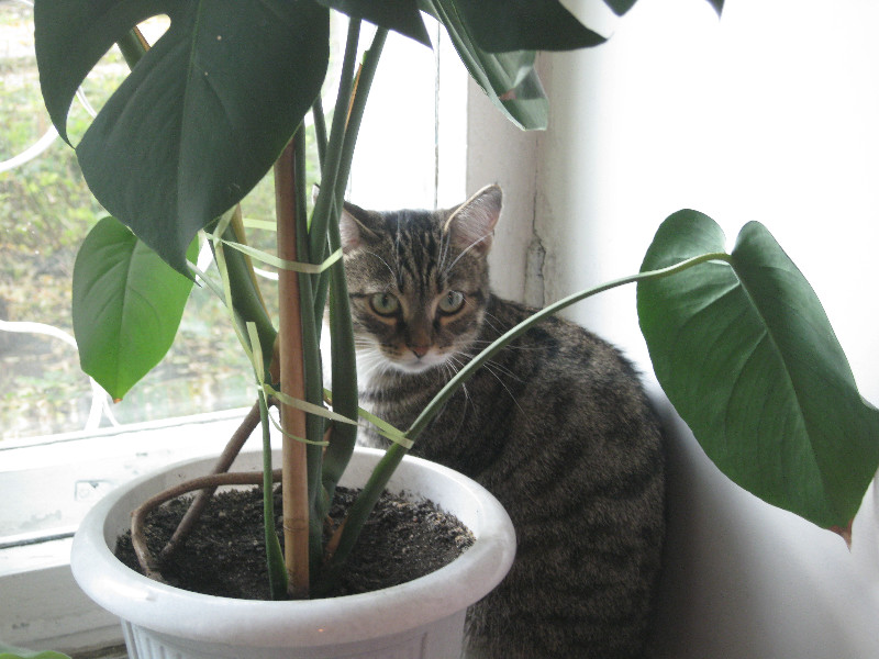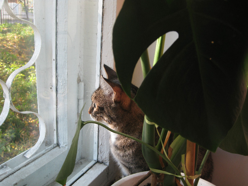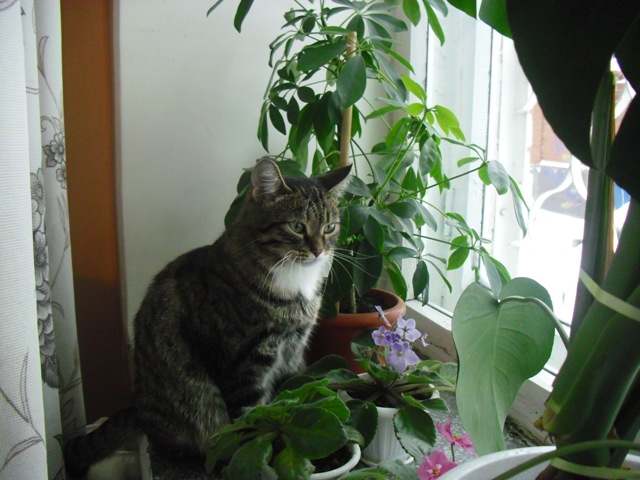 Это редко бывает. Мне пришлось расстаться с цветами, т.к. мои домашние котишки грызут и роняют их. А Рыся такая умничка, только любуется на цветы