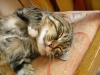 Как только услышит от него: "Рысенька! Массаж!" прибегает и плюхается рядом. Со старшей хозяйкой Рысенька любит играть в догонялки.