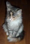 Ей примерно 3 - 3.5 месяца, она уже вполне самостоятельная, ходит только в лоточек, кушает без проблем сухой корм и, вообще, большая умница.
