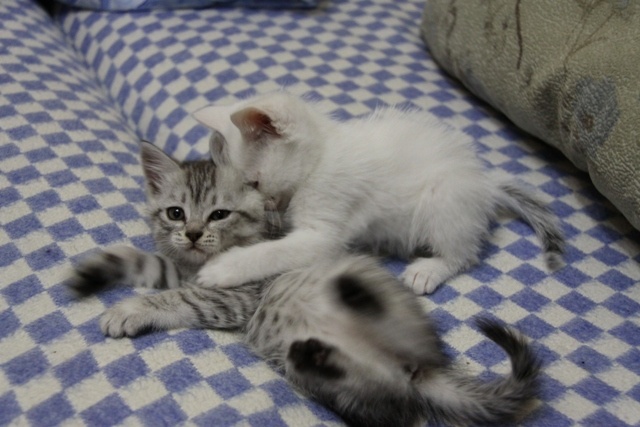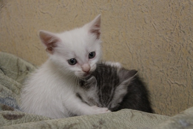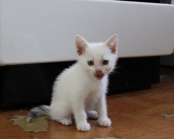Девочка - окрас "вискас", мальчик - беленький, хвост голубого цвета