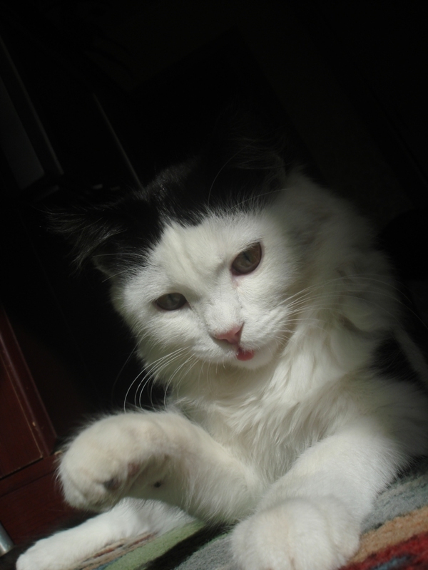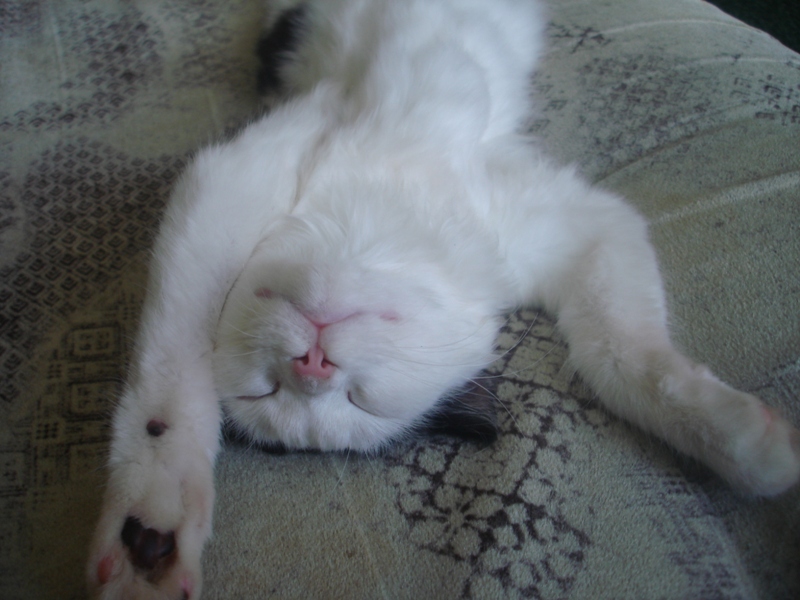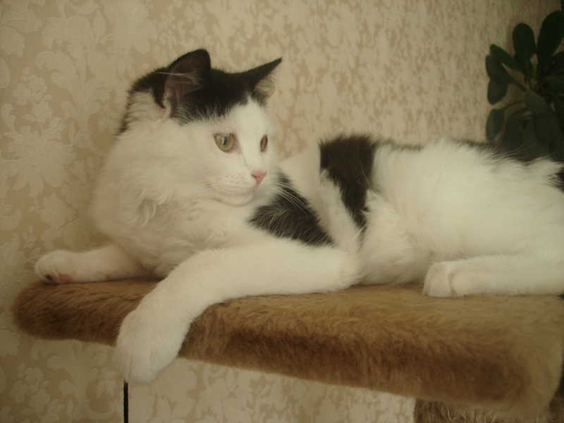 Имеем: котик, примерно месяцев 5ти, зубки еще только, только лезут, безумно ласковый, просто как сосиска висит на руках в любом положении и в любом месте, когда ехали в машине, он урчал, потягивался и сладко спал на руках, кот просто счастье какое то, горшок нашел с первого раза, кушает сушку, к другим кота дружелюбен. Вообще котик сплошной позитиффф. Вот и мы