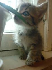 В самые добрые, ответственные руки отдается маленькая (1,5 мес) красотка. Знает лоточек, кушает корм для котят, ветеринаром осмотрена. Малышка очень ласковая, охотно идет на руки, балдеет от шнурка. Может часами тарахтеть, как маленький трактор. Вообщем очаровательная кошечка, думаю, она принесет кому-то море радости! 8-963-942-98-25, 8-913-951-37-09