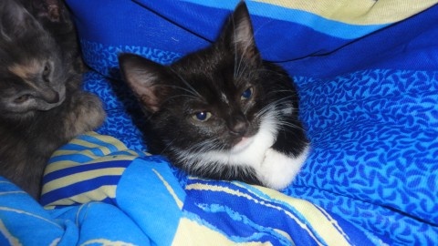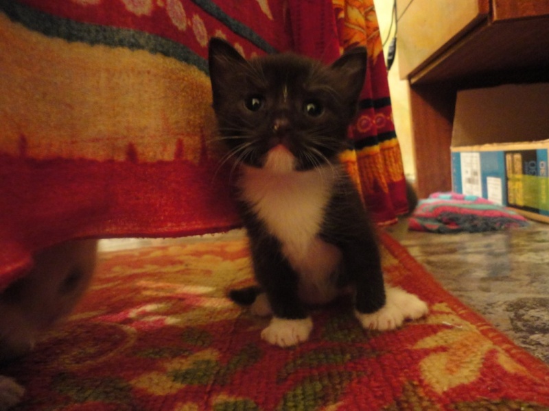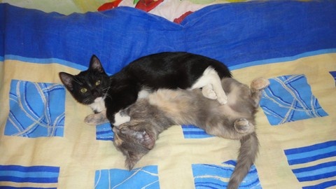 Расцветки котят: черный, черный с белыми носочками, пузиком и галстуком - самый мурлычный)) и пестренкий(серо-персиковый). Очень игривые, черного не получилось нормально сфотать даже...
