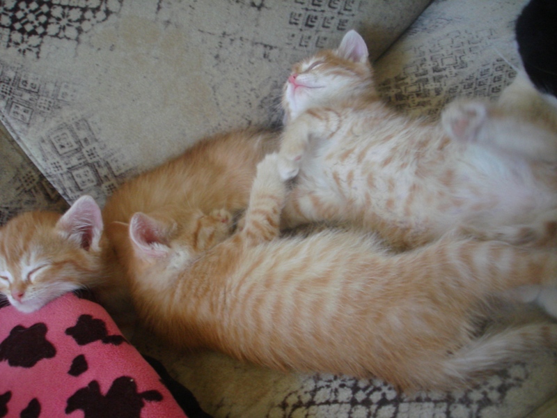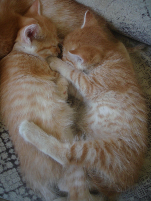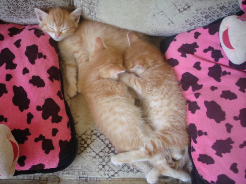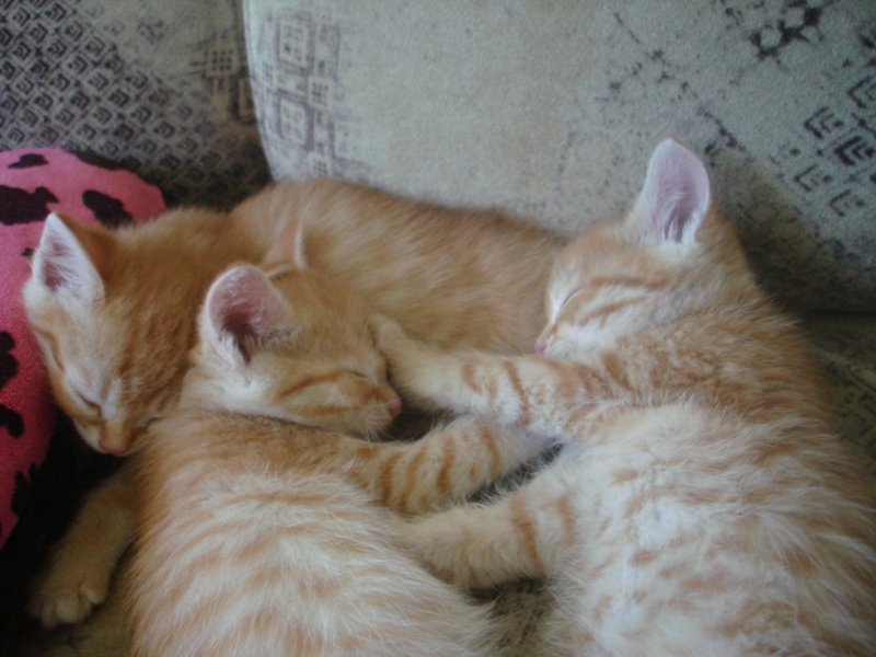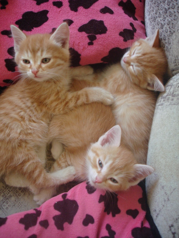 В итоге имеем: 3 кото-ребенка, возраст 1 месяц, совершенно чистые, наеврное домашние, людей не боятся, кошек тоже, дома совершенно свободно передвигаются, очень ласковые, спали с нами в обнимку всю ночь. Сейчас осваиваем горшок, кушаем влажник детский, 2е даже хрустят сушкой. У нас 1 мальчуган и 2 девахи. Налетай народ