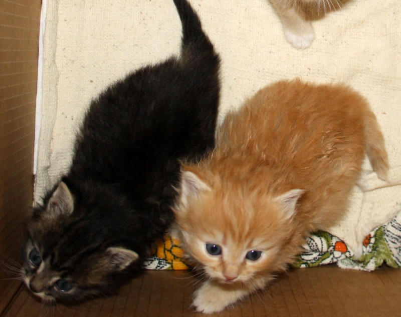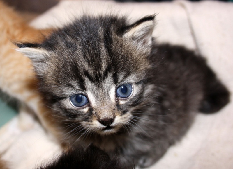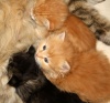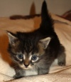 1. рыжий котик пушистый, шерстка волнистая, как-будто с кудряшками, он раньше всех научился есть и ходить на горшок, ест все что дают, в остальном обычный котенок, в меру игривый и занятный, впрочем он еще и заботливый, когда котята были одни он вылизывал их 2. рыжик гладкий с белыми лапками, облегающий костюмчик с прерывистой конопатой полосочкой, подшерсток короткий пуховый, плотный - приятный и теплый на ощупь, жалко на белых лапках уже не видно (шерстка подросла) "рыжего маникюра" на коготках, когда он зажмурившись аккуратно придерживал (другие хватали)соску вид у него был аристократичный (я его только так теперь и воспринимаю), на горшок ходит, ест сметану, курицу, жидкие кашки, но соска - главное 3. котик черно-серый пушистый, полосочки на животике и боках - обычный котенок 4. кошечка-сплюшка, спокойная, любит поспать, мы ее звали Тихой Сапой. Серые едят курицу, кошачьи паштеты, детское питание, соска еще очень нужна.