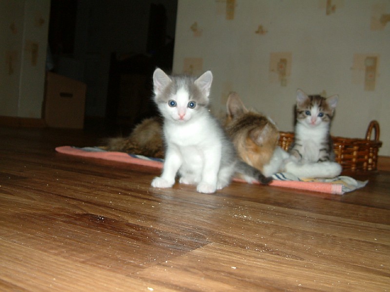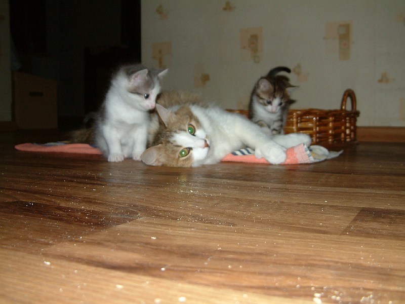 Летом, ещё в июле к нам на дачу стала ходить кошка. Ну мы её маленько подкармливали. Спрашивали соседей, смотрели объявления по дачам, но так и не узнали чья она. По выходным когда подъезжали к даче, она уже ждала возле дома. Ну и в итоге по осени решили взять её к себе домой. Кошка оказалась очень умной. Никаких проблем с ней. Но самое неожиданное , что 29 октября родила трех котят. Две девочки и дымчатый мальчик. Больше всех обрадовался сын , он ещё первоклассник.