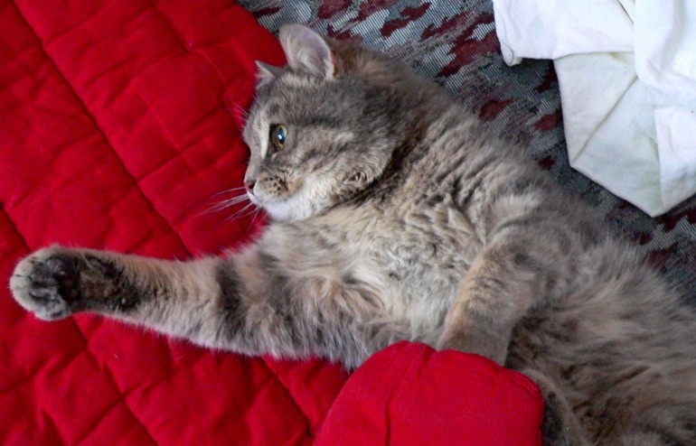 С людьми очень-очень ласков. Если взять на руки, и он поймет, что ему не будут ставить уколы и ковыряться с хвостом, то может ласкаться и мурчать часами. В общем, очень доверяет он людям. Несмотря ни на что.