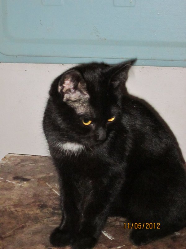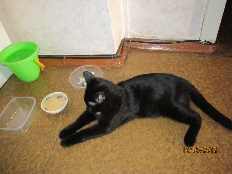 Подкинули в подъезд "добрые" люди котика в ошейнике, с приданным из молока и корма...