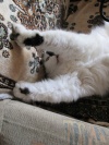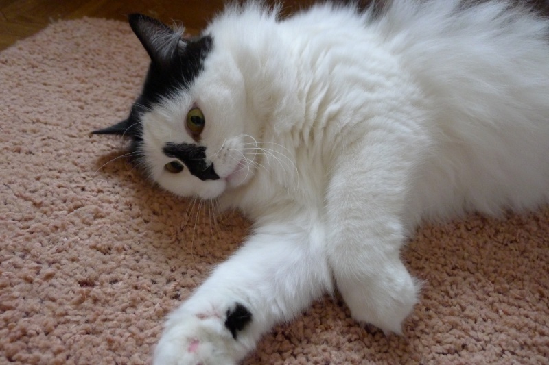 Киса очень любит общение. Стоит только заговорить с ней, так тут-же начинает тарахтеть, солидно, как Харли-Дэвидсон. Когда гладишь ее, в благодарность лижет руки. Шерсть мягкая и приятная на ощупь.