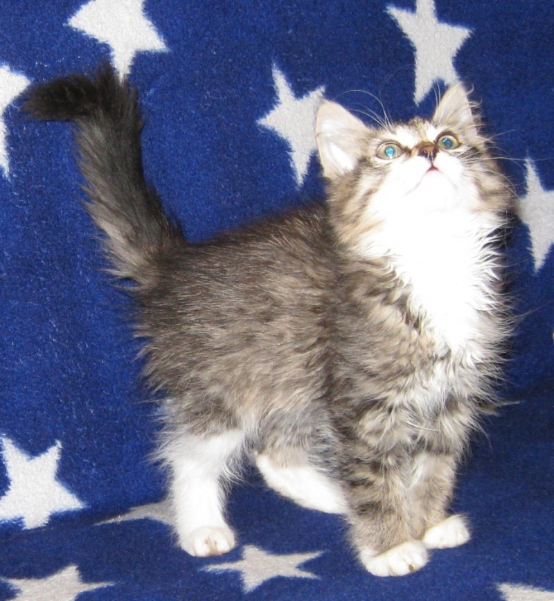 Пушистенький. Беспородный, но похож на "сибирскую".