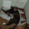 Кошка Мяшка была найдена в подвале дома, стерилизована, протравлена от паразитов и немного откормлена! Возраст приблизительно 2 года. Полосатая, асимметрична. Смешные большие уши и глаза выдают в ней охотника, ярого истребителя мышей! хвост короче чем у обычных кошек, чтоб не наступали и смешная белая нога, где белого явно больше чем на остальных лапах! Кошка очень активная, играет как котенок, любит пакеты, а именно ими шуршать, разговорчивая, вечером постоянно мурлыкает, любит котят, всегда хочет быть поближе к людям, встречает с порога! К лотку приучена! В еде неприхотлива, пьет молоко, ест домашнюю еду или кошачий корм с желе:)! всегда находиться рядом, где вы там и она! Любимое место у окна на балконе, её наблюдательный пост:). Ищет хорошие добрые руки, чтобы дать возможность новым подобрашкам получить помощь и найти свой дом!