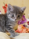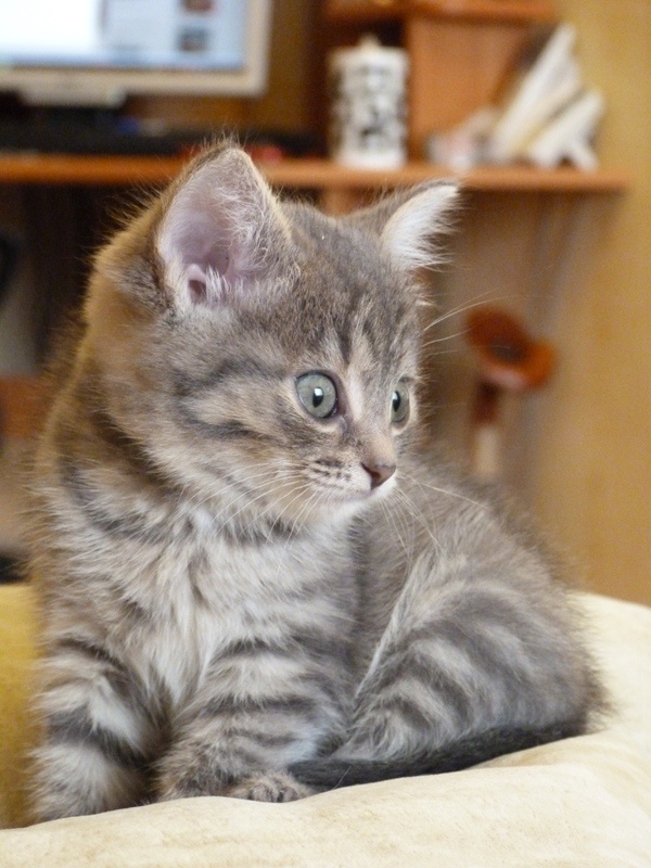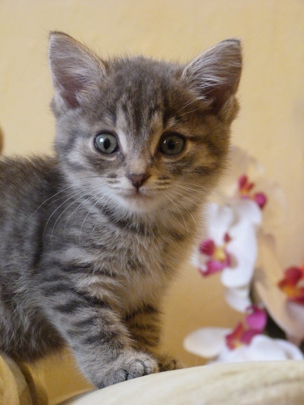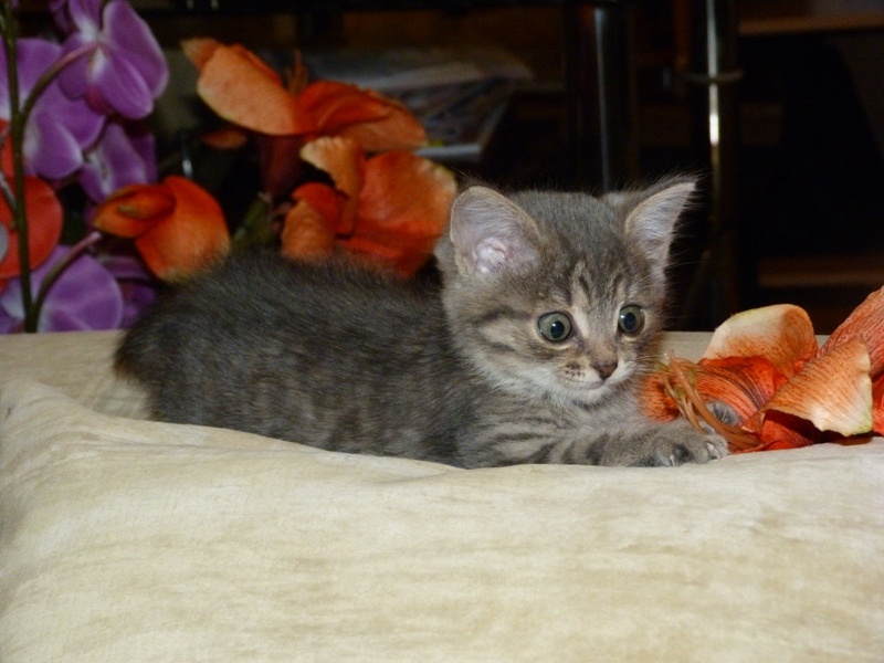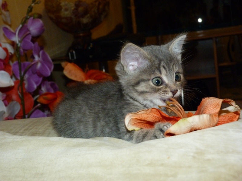 Зарине 1 месяц, она очень ласковая, игривая и беззаботная как все детки. Кушает влажный корм и сухой, лоточек у нас без единого промаха. Маленький комочек счастья