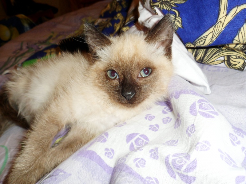 Снежка - редкого окраса. Похожа на Тайскую. Становится все более шоколадной. Очень ласкова и игрива.