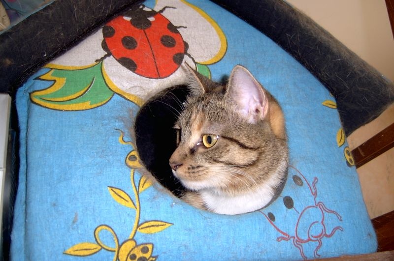 Бусинка стерилизована, привита, имеет ветпаспорт и справку ветеринара о здоровье. Отдается единственным ребенком в семью, потому что имеет очень шустрый характер и задатки лидера. Доктор сказал, что ей 1,5 года. Записали день рождения 8 марта 2011 года.