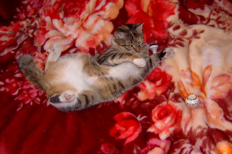 Маленькая Бусинка много пережила, от нее отказались прежние хозяева из-за рождения ребенка, а человек, который ее потом взял, решил посмотреть, кто сильнее - кошка или ее пес. Девочка очень храбро защищалась, но поняла, что все кругом - плохие люди. Ее забрал добрый человек по имени Зоя, теперь она живет в хорошем доме, но пришлось долго объяснять ей, что люди и животные вокруг не ее враги. Когда делали прививки, то ветеринар спросил, какую породу записывать в ветпаспорт - у Бусинки залом на хвосте и хвостик у нее вполовину короче, со смешной шишечкой на конце. Решили, что бобтейл)))