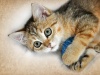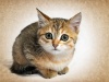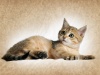 Маленькая золотая девочка. Окрас у нее такой необычный, с золотым отливом. Девочке примерно 2,5 месяца, она очень игривая девочка, любит сидеть на руках и играть.