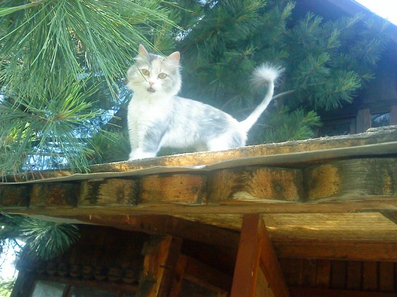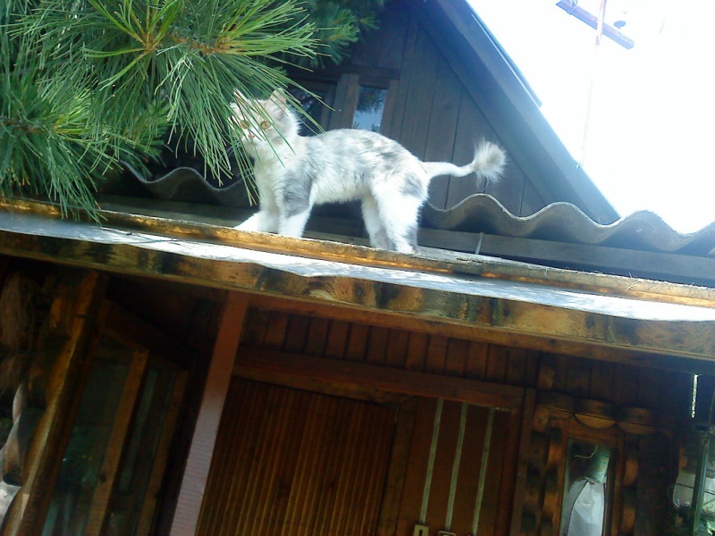 Киса боится чужих людей - сразу съеживается и закрывается хвостом. Даже сфотографировать толком невозможно.