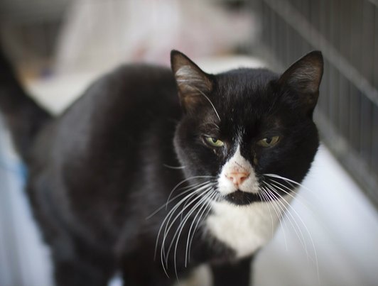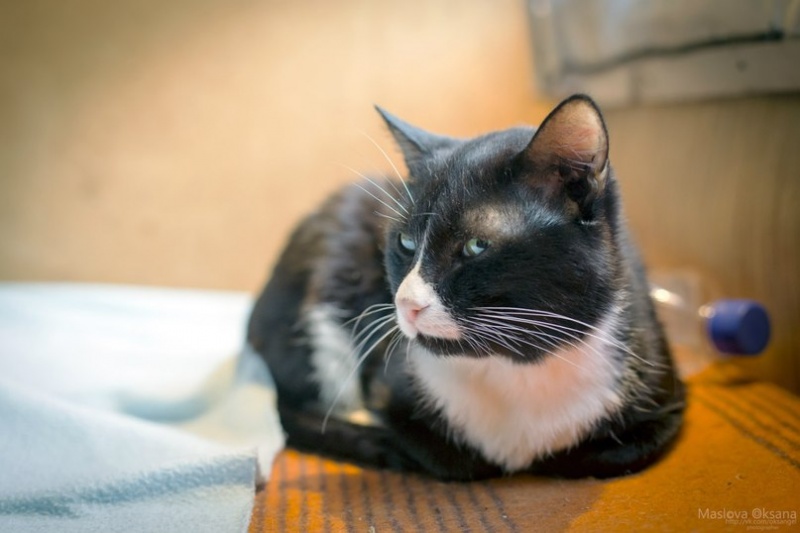 Его подобрала женщина, которая живет в Иваново, а в Новосибирск приехала лечиться. По незнанию она пристроила его к неадекватной женщине - накопительнице животных. С большим трудом его удалось забрать и теперь он надеется найти добрых, ответственных хозяев.