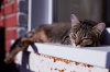 Нашли Юм-юм холодным осенним днем, кошка была очень худой, со сломанным клыком, вероятно, однажды выпала из окна и была вынуждена скитаться. Старые хозяева не нашлись, теперь ищем ей новых и лучших.